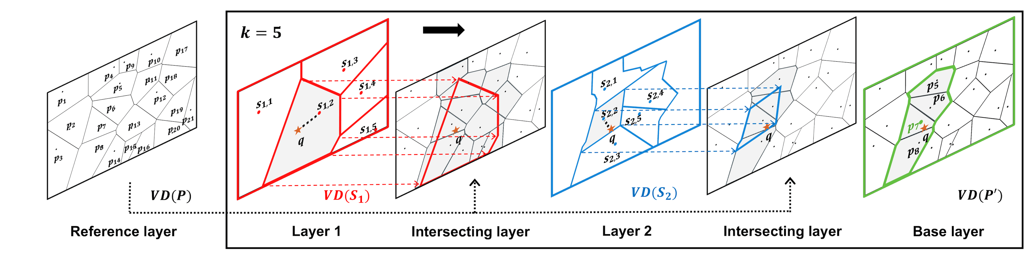 We propose a novel exact nearest neighbor spatial search algorithm, Dynamic Hierarchical Voronoi Overlay (DHVO).
